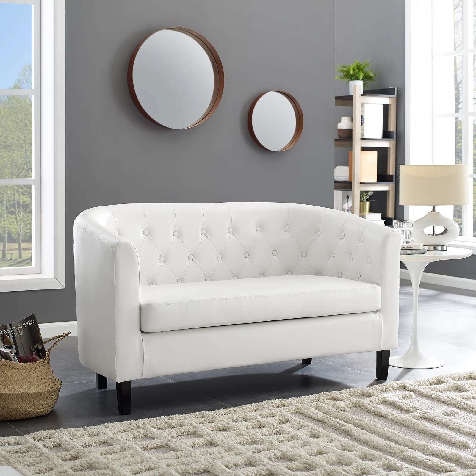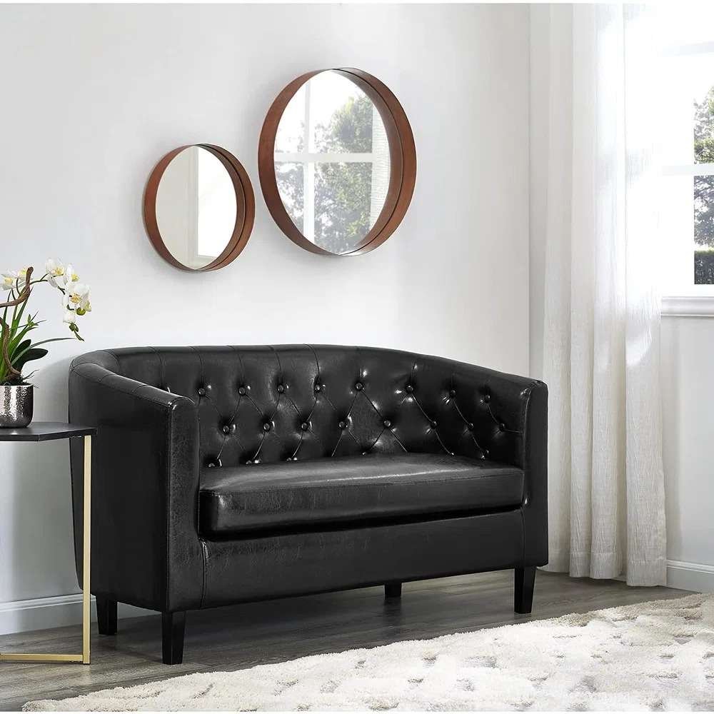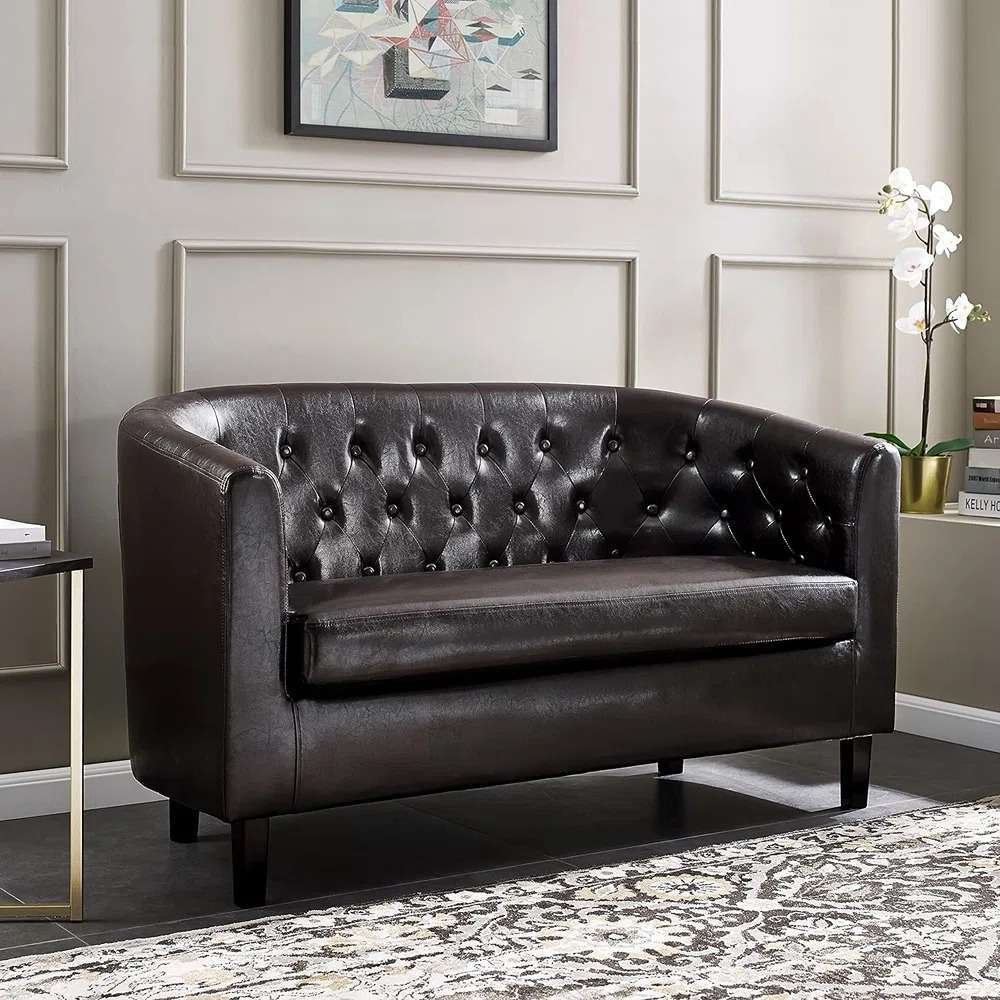 HOMEX Furniture Introducing the 2 Seat Leather Sofa With Easy Comfort – Your Ultimate Oasis of Relaxation!  This retro-modern sofa features a visually contrasting channel tufting that introduces an energetic and lively welcome for your living room or lounge area. Soft, stain-resistant performance velvet upholstery covers the sofa’s solidly constructed wood frame. Ingenuity features dense foam cushions for a premium seating experience. It’s hidden legs offer solid support in this comfortable centerpiece for the modern home.